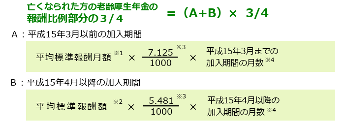 ※3 遺族厚生年金の長期要件の場合は、乗率は死亡した方の生年月日に応じて異なります。
